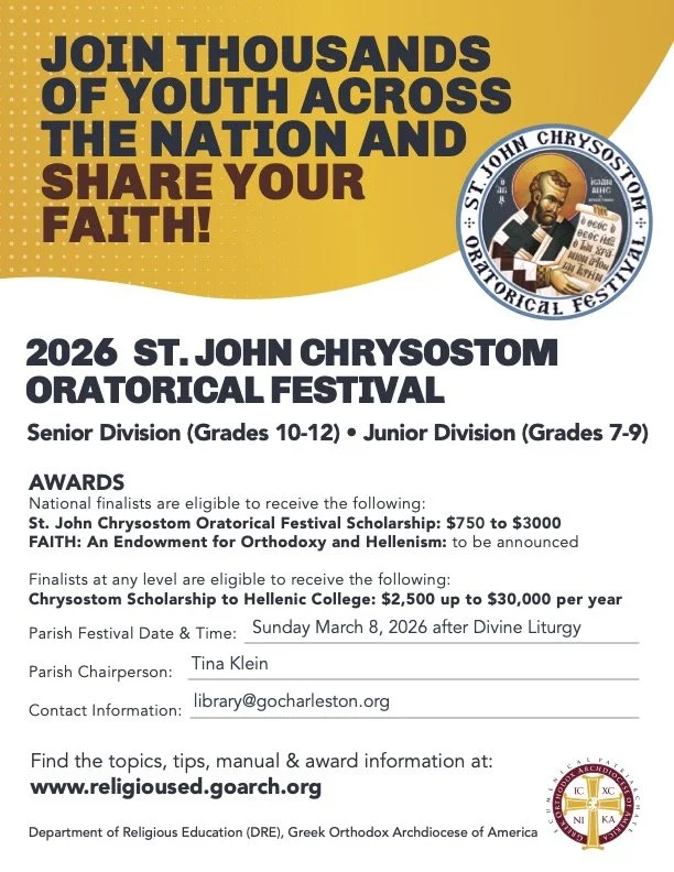 Joanna Catravas January 8, 2026 Announcement, GOYA, Holy Trinity, HOPE and JOY, Youth Ministries St. John Chrysostom Oratorical Festival March 8, 2026 Joanna Catravas January 8, 2026 Announcement, GOYA, Holy Trinity, HOPE and JOY, Youth Ministries